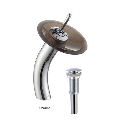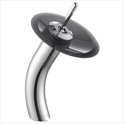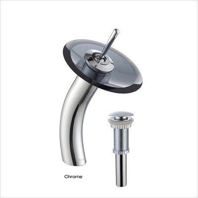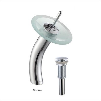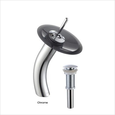 KRAUS KGW-1700-PU-10CH-BLFR Single Lever Vessel Glass Waterfall Faucet Chrome with Black Frosted Glass Disk and Matching Pop Up Drain Description